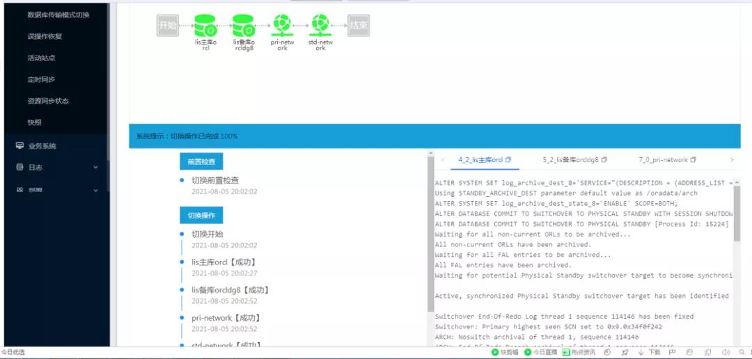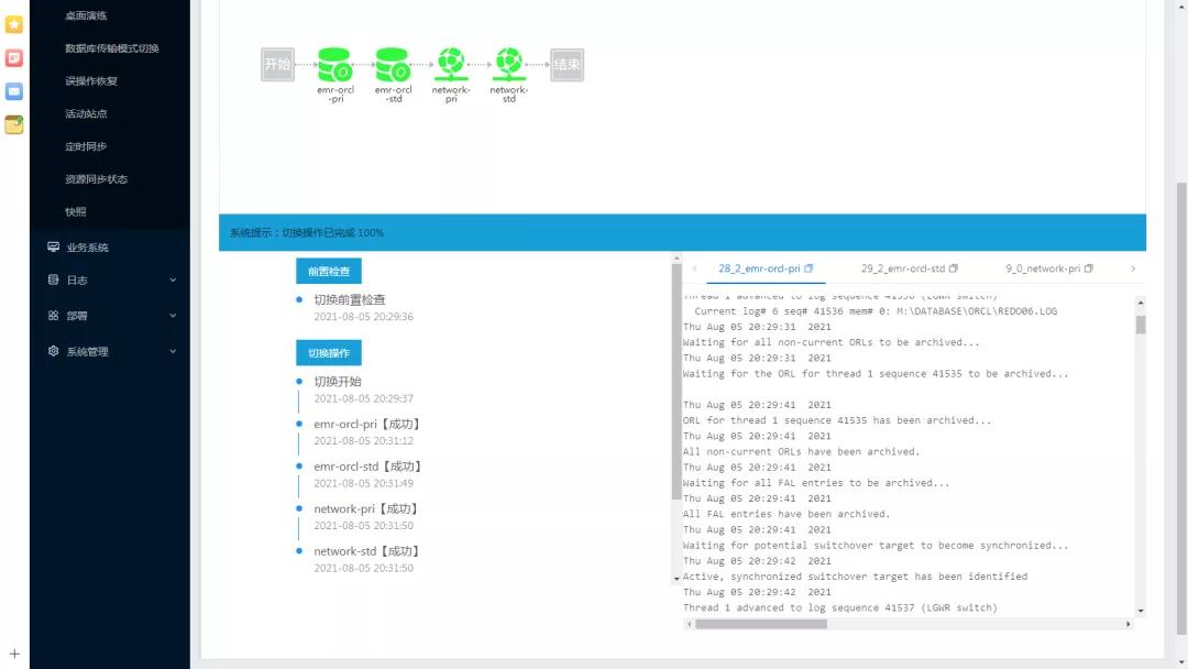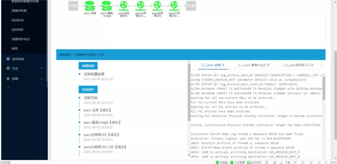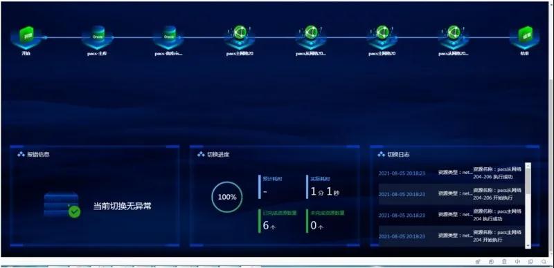 针对中国科学院大学附属肿瘤医院核心HIS/EMR、LIS、PACS三套数据库均在3分钟以内完成业务切换使用。