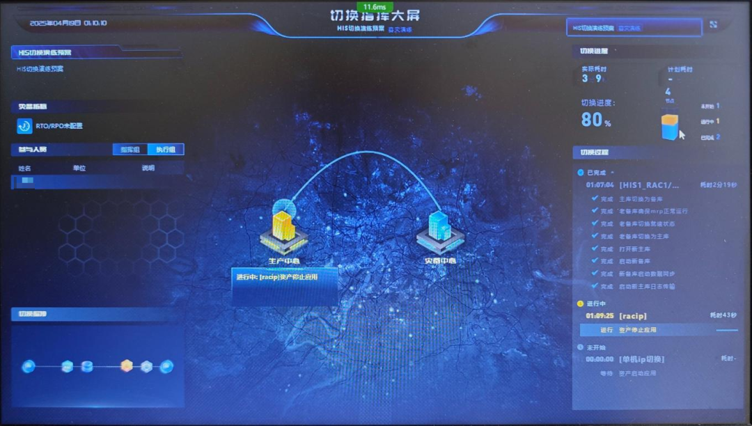 4月19日,一场 HIS 系统数据库跨院区一键应急切换演练在温州医科大学附属第一医院顺利开展,演练全程自动化、业务数据零丢失、医院秩序井然,最终以7分钟正切、3分钟回切的极限速度,顺利达成年度演练目标。
