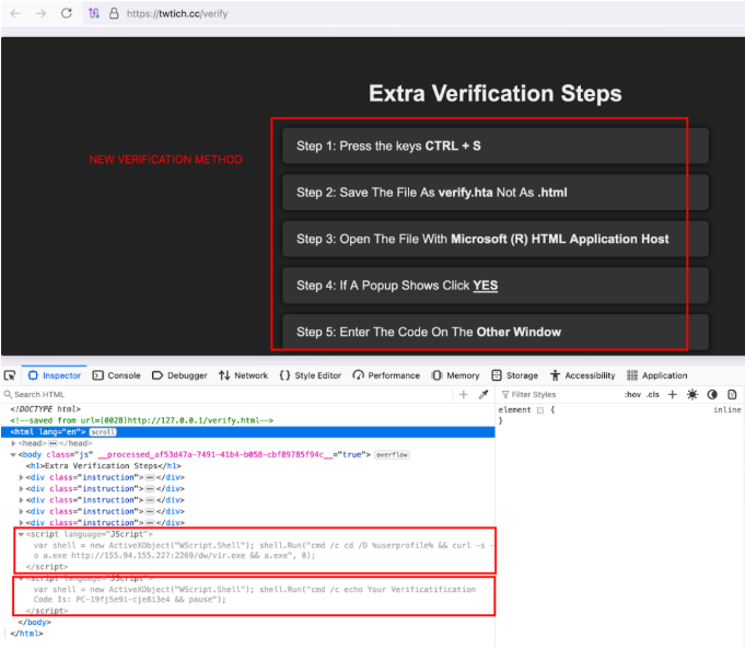 CloudSEK报告发现,Epsilon Red勒索软件正通过伪装成Discord、Twitch与OnlyFans的验证页面进行传播。攻击者使用带有恶意脚本的.HTA文件和ActiveX技术,诱骗用户执行命令,后台静默下载并运行勒索程序。伪页面还展示拼写错误的“Verificatification”提示,混淆受害者判断。该活动基础设施涵盖多个伪造域名及IP,另发现Quasar RAT远控程序。