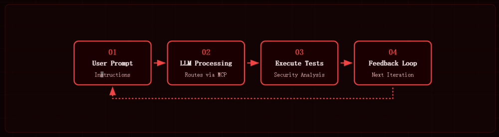 HexStrike AI 是一个革命性的人工智能驱动的进攻性安全框架,它将专业安全工具与自主人工智能代理相结合,提供全面的安全测试能力。HexStrike AI基于多代理架构构建,利用智能决策、实时漏洞分析和先进的自动化技术彻底改变安全专业人员处理渗透测试、漏洞赏金狩猎和 CTF 挑战的方式。HexStrike AI的工作原理是通过MCP与外部LLM进行人机交互,形成提示、分析、执行和反馈的连续循环。其工作示意图如下