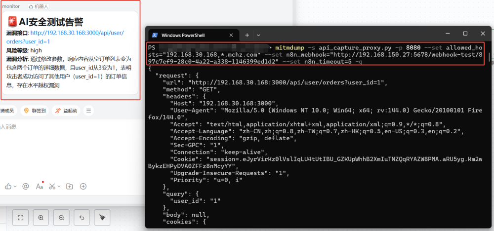 如此以来,就对整个检测系统进行了解耦,N8N作为检测中枢,其中的所有模块都可以复用,如流量解析、请求重放、去重、告警通知等,如果想要测试其他漏洞,只需修改AI节点中的提示词即可,从维护和扩展上来说,都非常的方便直观。对于测试人员来说,不需要知道检测系统怎么启动运行,只需要启动一个代理接入即可;对于设计人员来说,只需要在N8N工作流平台中进行流程设计即可。这样的模式对于集成到CI/CD会更有优势。